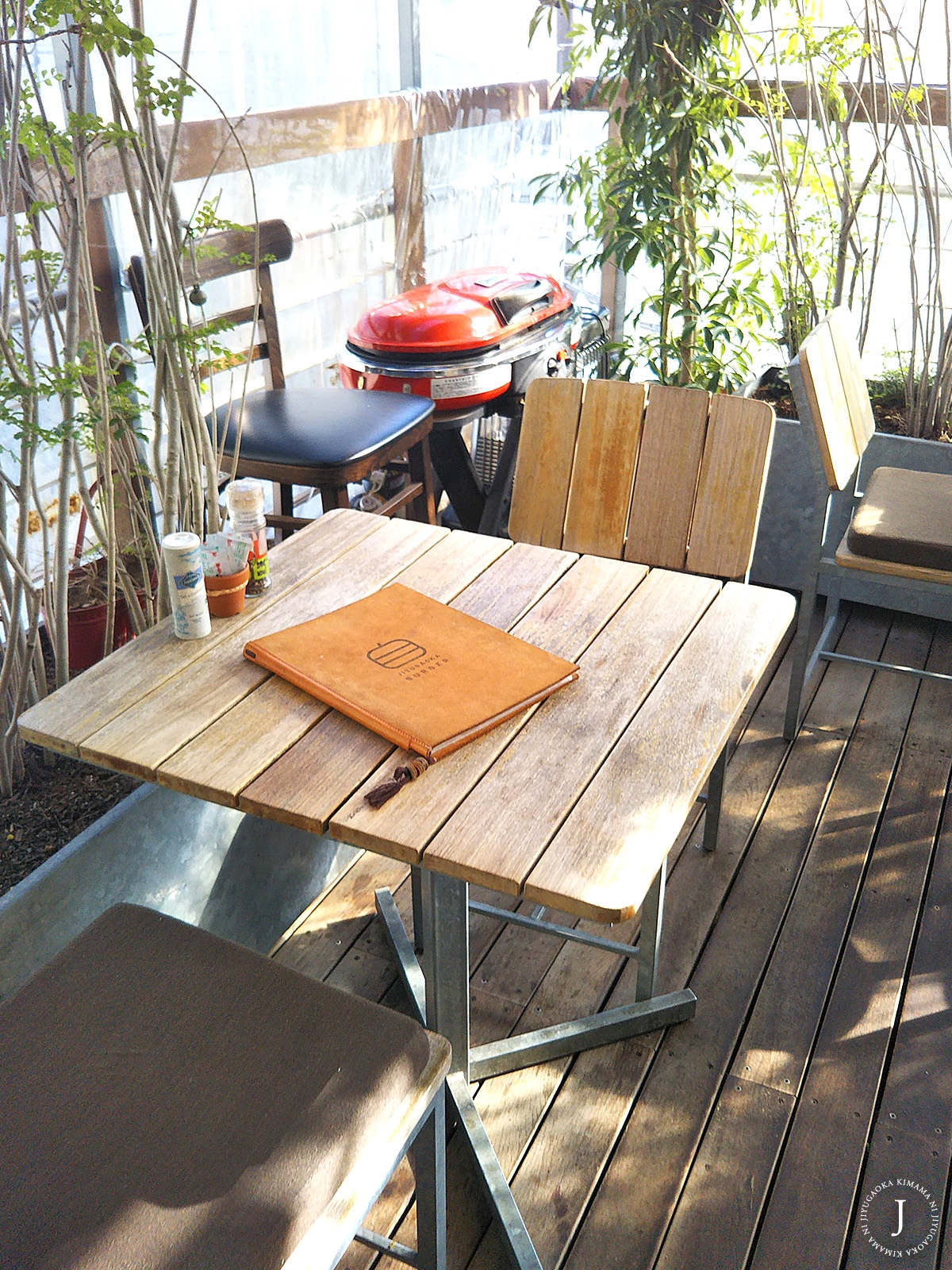 カウンター席が数席ありますが、メインは緑に囲まれたウッドデッキのテラス。